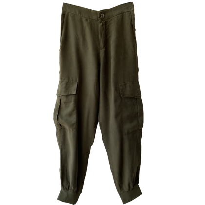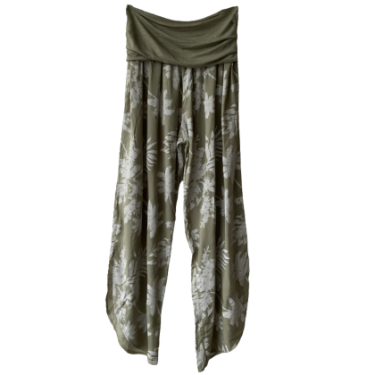 Pantalon femme en viscose Menthe imprimé. légère ouverture sur bas de jambe.