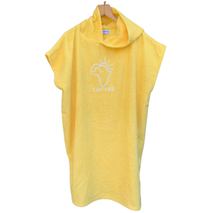 Poncho Femme en éponge jaune 100 % coton. broderie sur poitrine