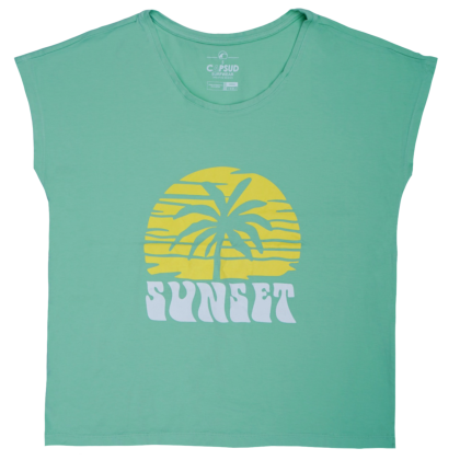 TSHIRT FEMME REF SUNSET COULEUR ANIS IMPRESSION : DEUX COULEURS SUR LA…