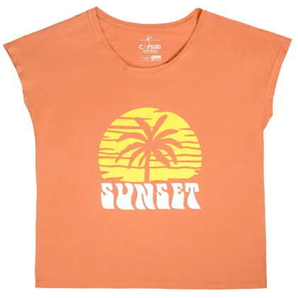 TSHIRT FEMME REF SUNSET COULEUR ABRICOT IMPRESSION 2 COULEURS SUR LA POITRINE