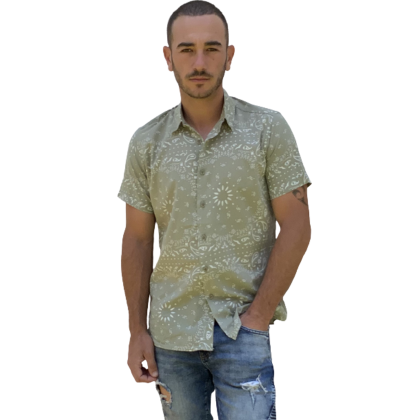 Chemise manche courte Homme. Tissu 100 % coton imprimé. Coloris Menthe.