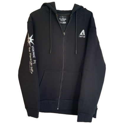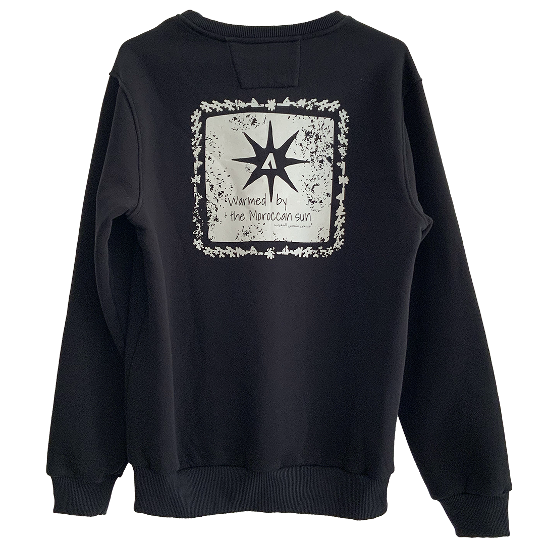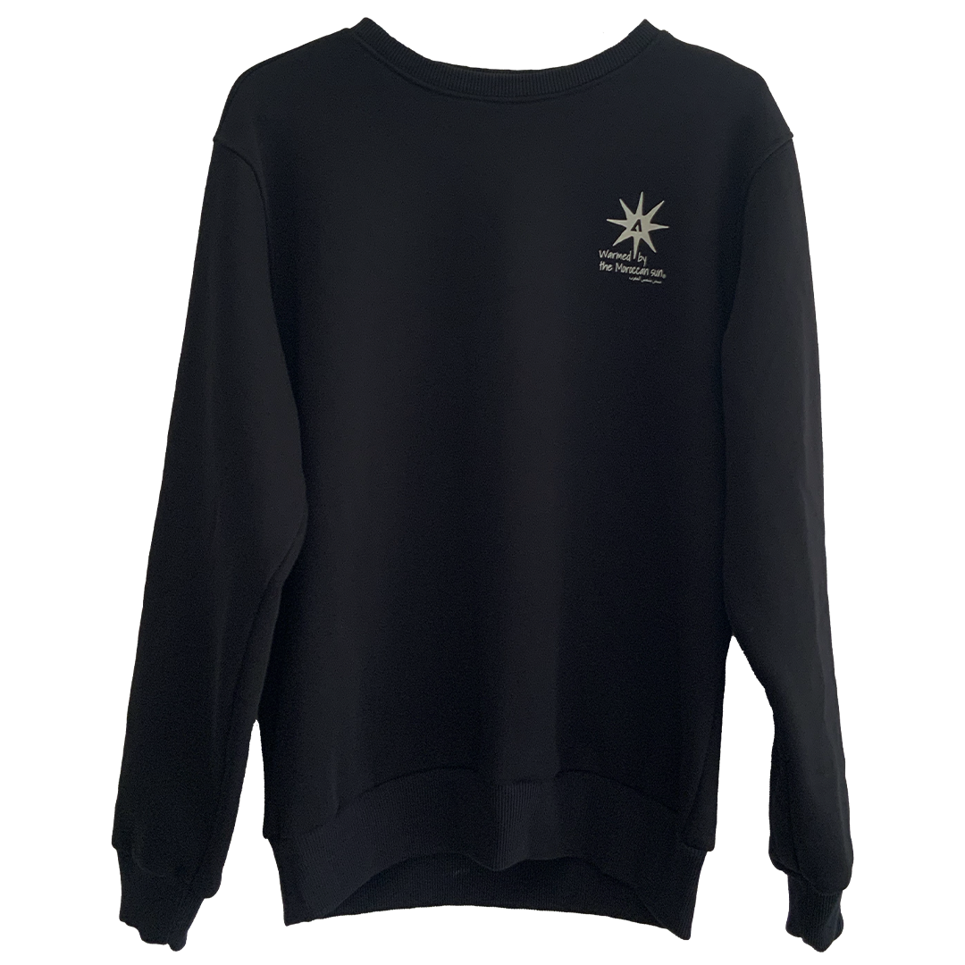 Sweat col rond, en molleton noir. Logos dos et poitrine